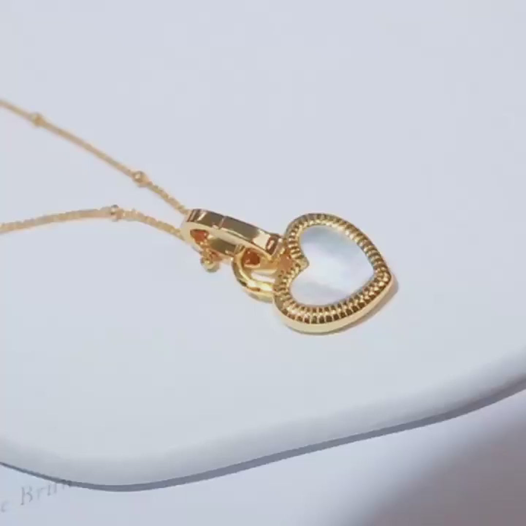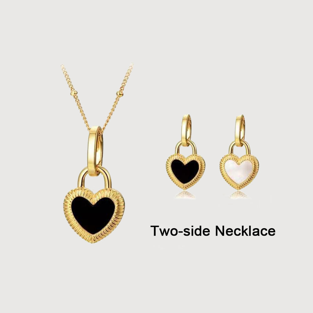 Black Onyx & Mother of Pearl Heart Two- Double Side Necklace – Sterling Silver with 18K Gold Plating