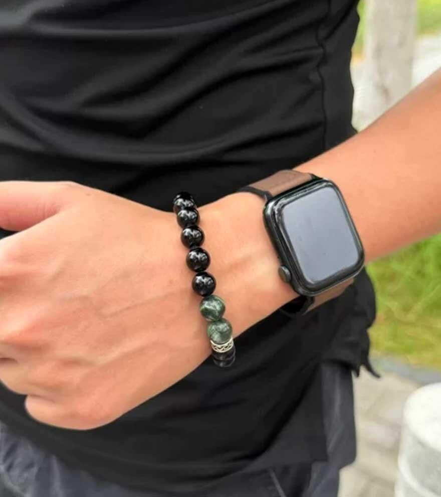 The Guardian of Vital Energy Crystal Bracelet | Black Tourmaline × Green Dragon Jade(Green Serpentine)
